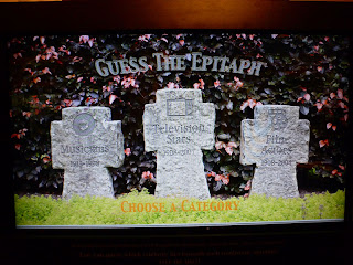 Another enjoyable section was "Funerals of the Famous"....lots of artifacts and information displayed about stars, sports figures and political people. Sparky enjoyed guessing the epitaphs of the rich and famous on an interactive large screen display.....